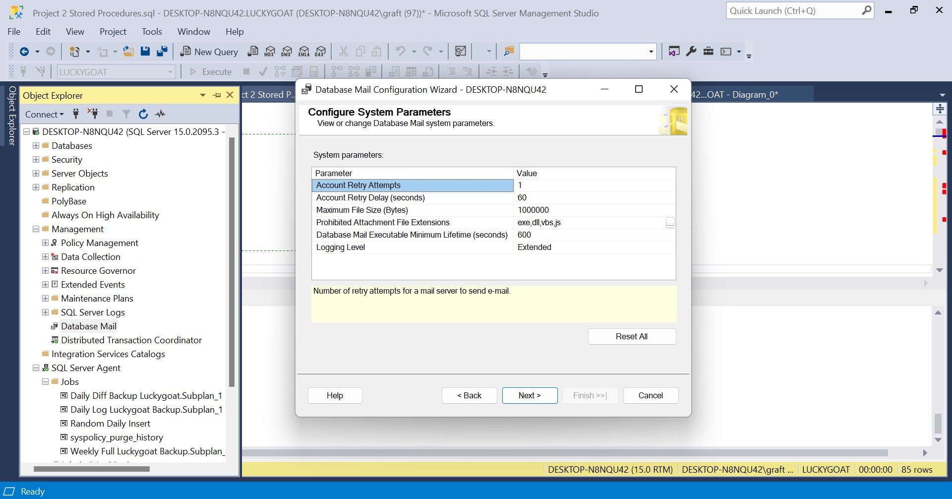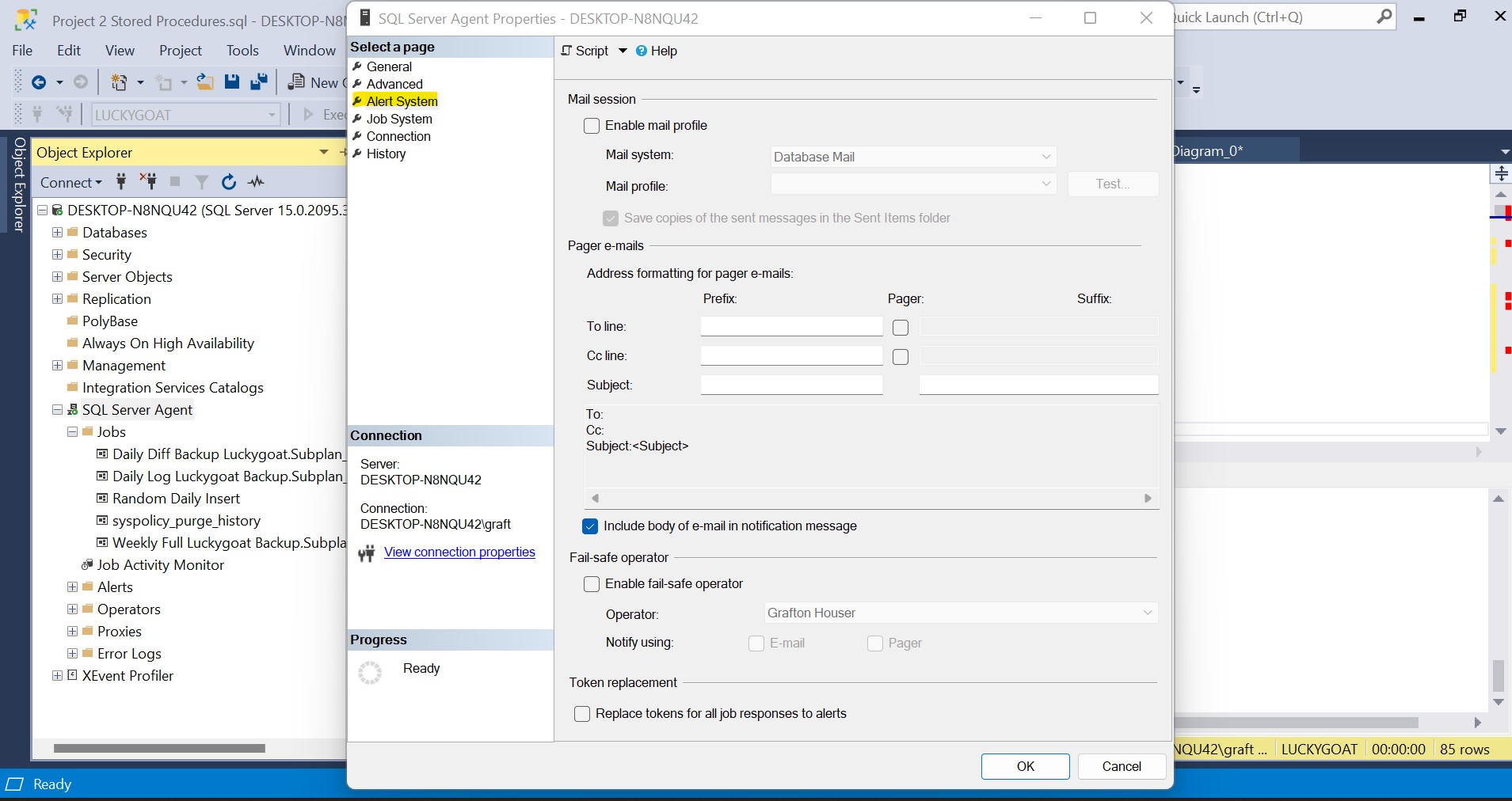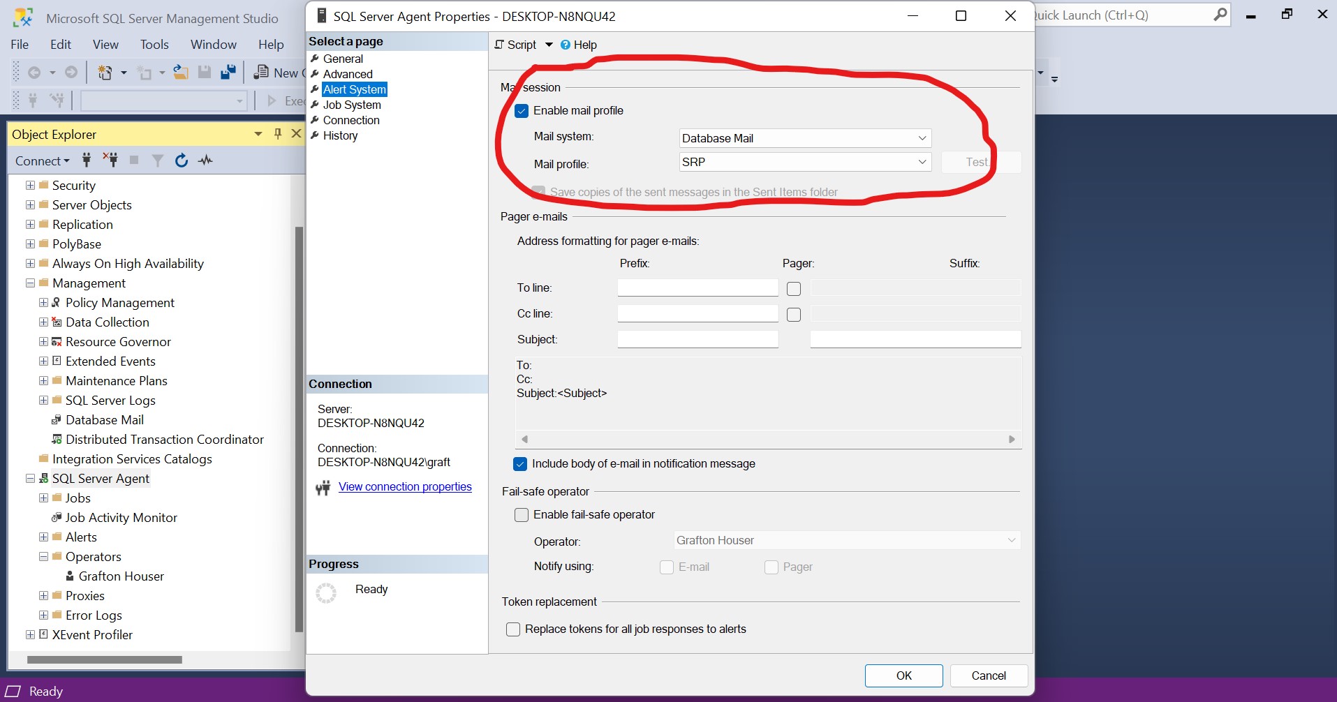 Now that we have created a Database Mail Profile, we can configure SQL Server Agent to use Database Mail