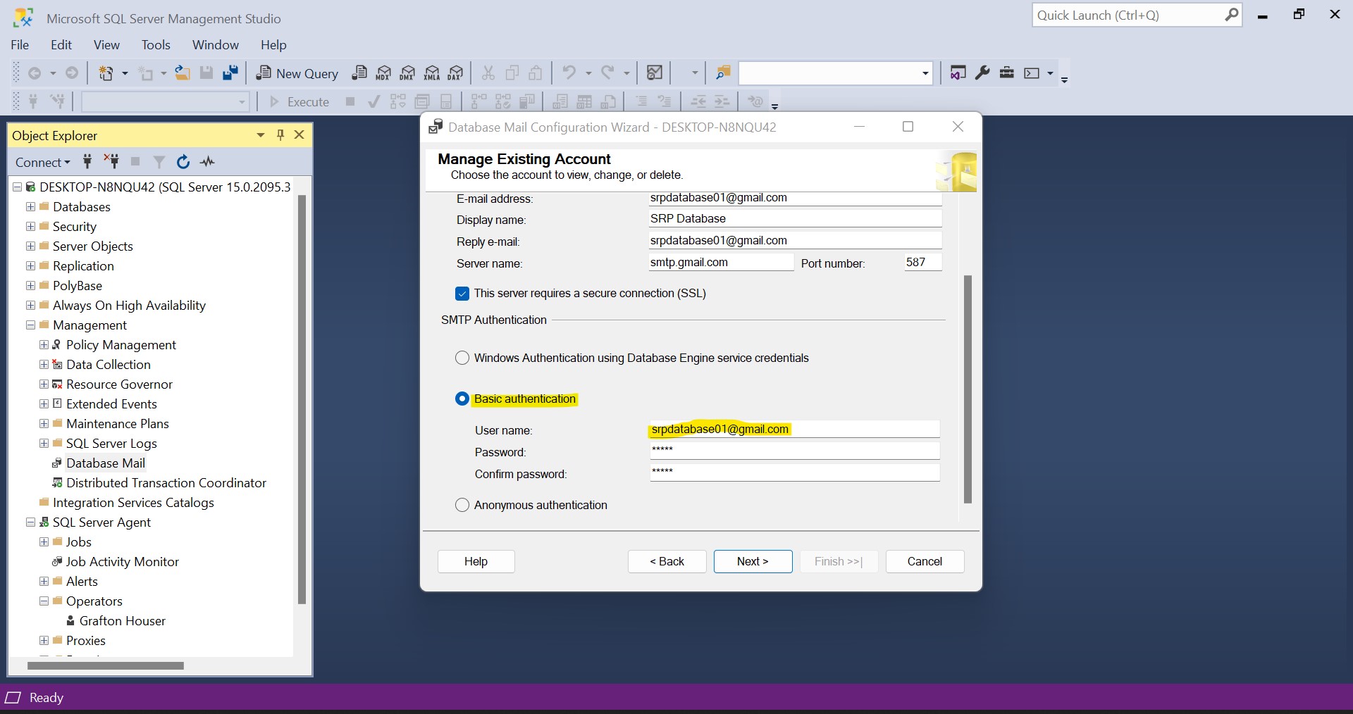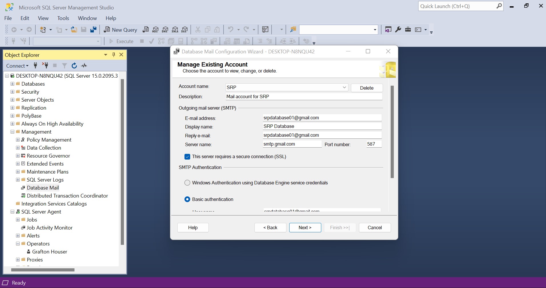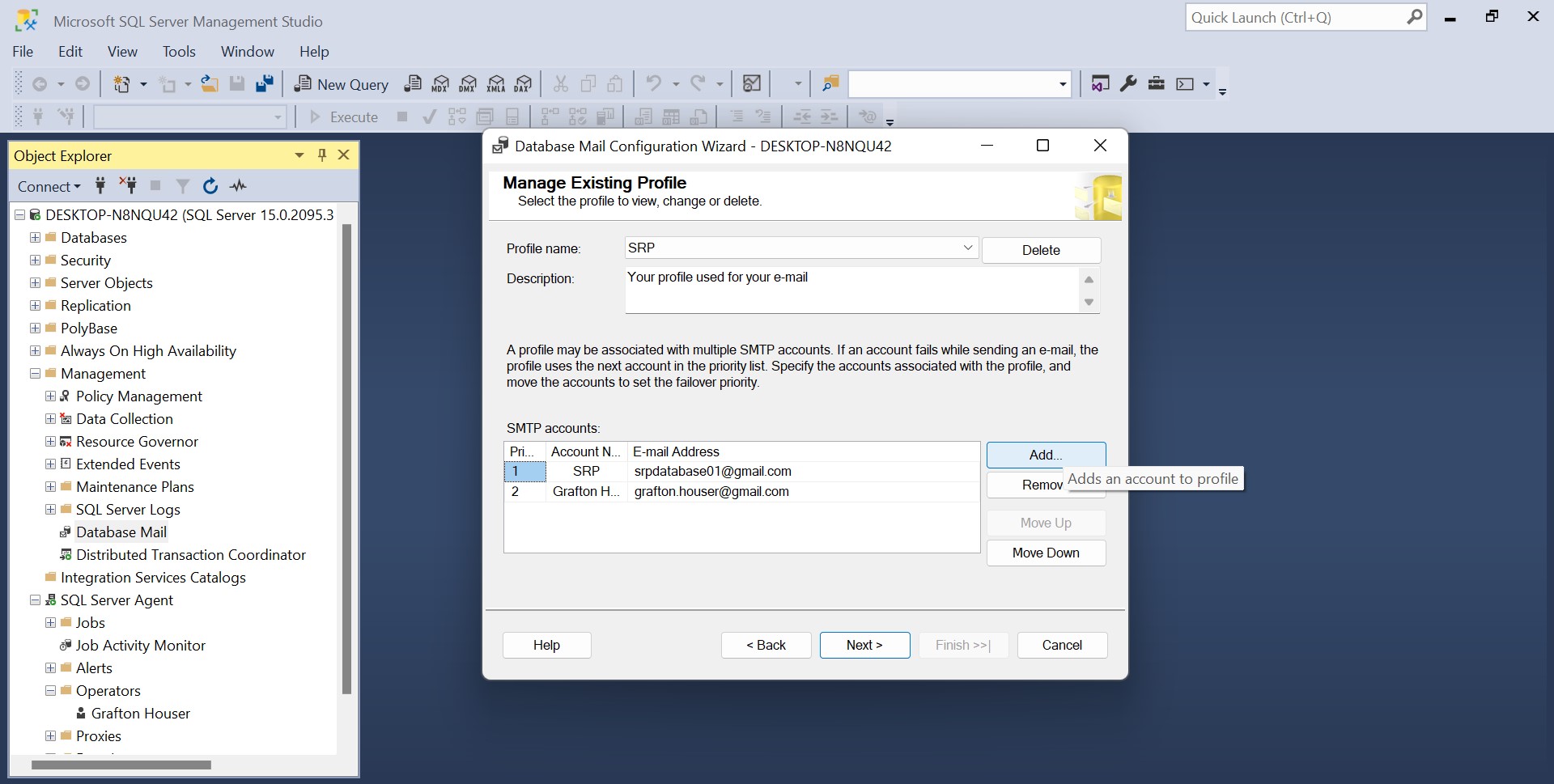 Setting up Database Mail Account in SQL Server 2019