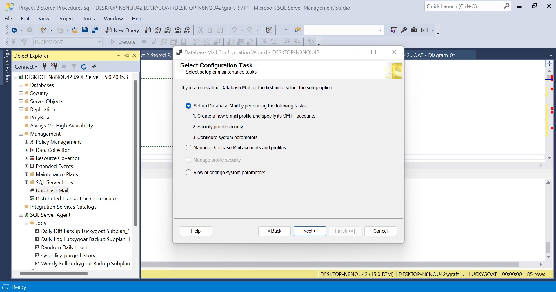 Select the first option, "Set up Database Mail by performing the following tasks", and enable the feature.