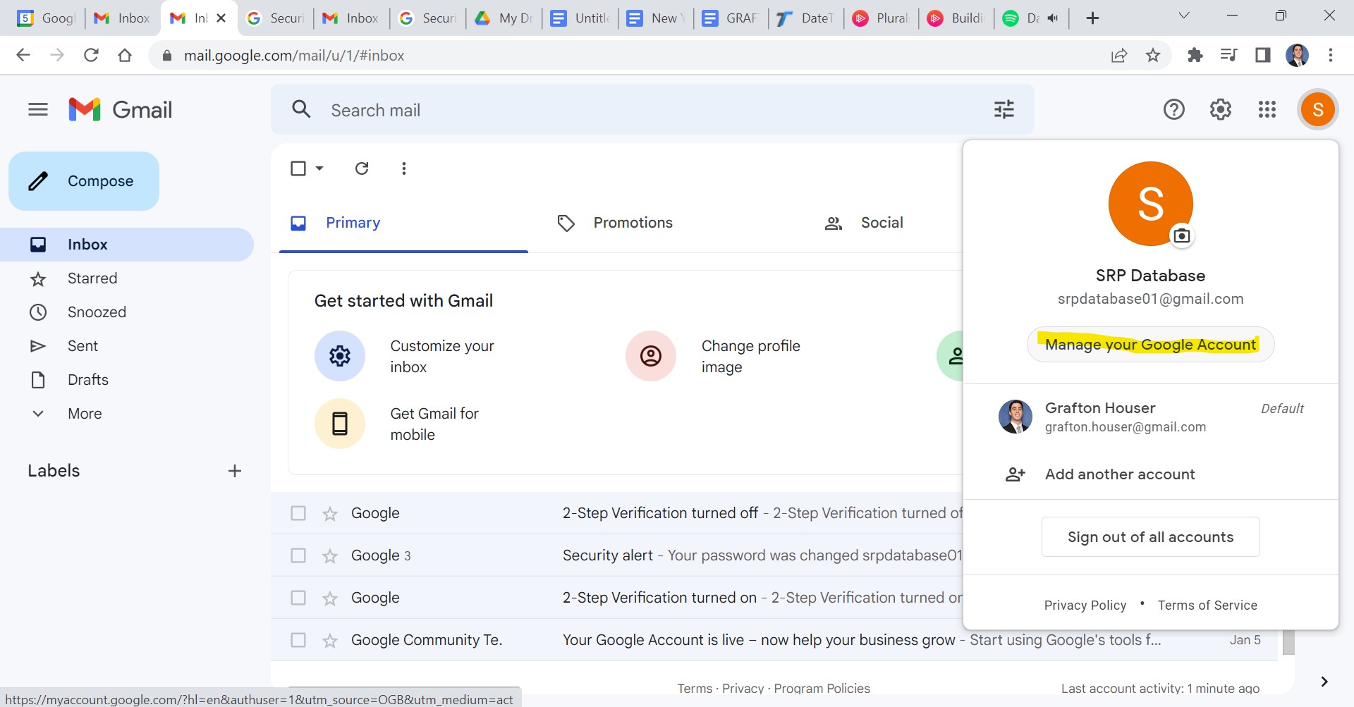 First, sign on to the company email that you would like to send SQL Server database emails FROM. Then select Manage your Google Account.
